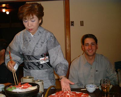 ALL THE FOOD IN JAPAN IS QUITE GOOD. HERE HERB WATSON ENJOYS ONE OF THE DINNERS WE HAD.