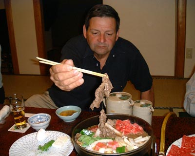 KEN RIDGEWAY ENJOYING ONE OF THE FINEST MEALS AVALIABLE IN JAPAN.