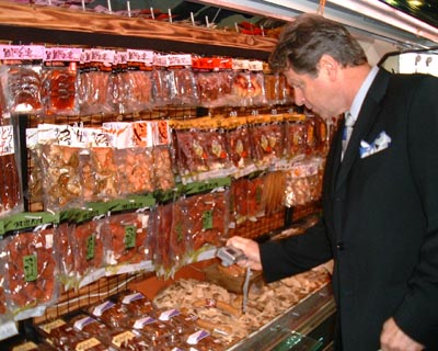 TIM JOYS CHECKING OUT SOME OF THE OVER 200 SALMON PRODUCTS PRODUCED AT THE SALMON FACTORY IN SAPPORO.