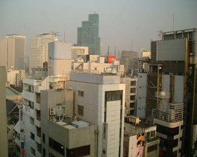 THIS IS THE VIEW FROM MY ROOM ON THE 9TH FLOOR OF THE IBIS HOTEL. THIS SHOWS A GOOD VIEW OF THE TOKYO SKYLINE.