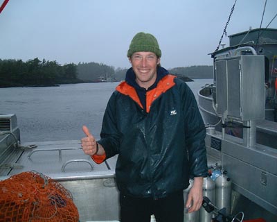 JASON TENDS DIVERS ONBOARD THE WESTPORT. HE LIKE TO SPEND HIS DAYS OFF IN VICTORIA.