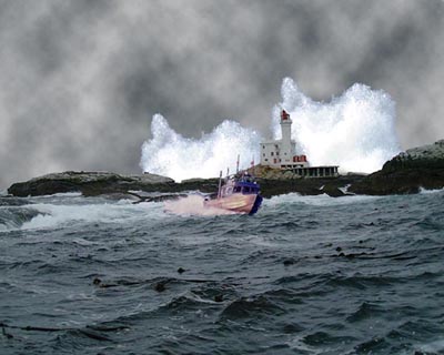 AND MAC BAY MANEUVERING THROUGH THE WAVES.