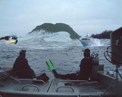 A LARGE WAVE BREAKING NEXT TO THE DIVE SITE.