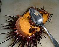 processing the urchin. |