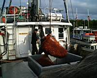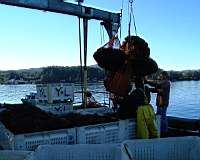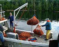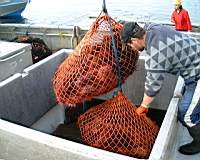 The full urchin bags are lifted on to